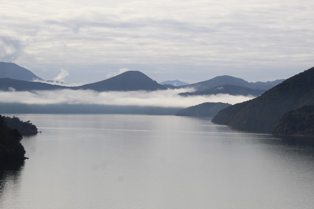 The ferry ride took a total of 4 hours, with about 3.5 hours of this being actual travel time and the rest being docking at the port. Our ferry left at 8:30am and we had to be checked in, with the van, before 7:45am. This was our first time doing anything like this, so we arrived well before that to ensure we didn’t miss our ride and lose out on our $300 (NZD) ticket. Check in was painless and we waited in the van lined up with the other travelers. After a bit, we started to board. This process took a while but eventually we got to the front and drove right onto the boat. We parked the van, grabbed our stuff and headed upstairs to the various lounges, cafes, and viewing areas on the boat.
