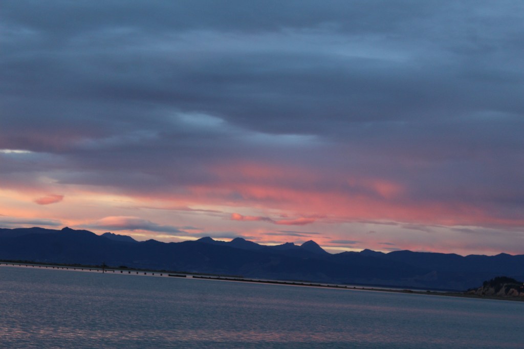 Once we arrived in the South Island, we went to a freedom camp site along the Motueka Bay. This freedom campsite was very busy, and pretty nice, with toilets, grills, and an outdoor shower. We arrived early, probably around 3pm, and there were very few spots left when we got there. I am very happy we found a spot, because the sunrise the next morning was one of the best sunrises we have seen so far! Tragically, I lost the lens cap to my camera at this stop. The saltwater baths by the site, however, were a little gross and not something either of us were keen on trying. I’m sure many people enjoy them… we just were not one of those many people.