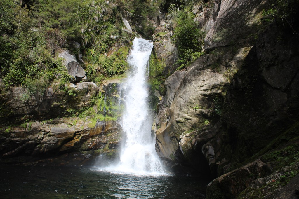Within the national park, there is a short 2 mile out-and-back hike to a 66 foot waterfall, known as Wainui Falls. It was a relatively easy hike, and we got to cross yet another suspension bride. New Zealand sure does love their suspension bridges, but that’s okay, we like them too! This waterfall has been one of my favorite so far. Not only is it stunning (especially after a rainy day), you were able to get right up to it. In the summer, I’m sure it would be so much fun to swim in the large pool underneath the falls. It was a little too chilly for either of us to brave it this time, but maybe we’ll come back when it warms up.