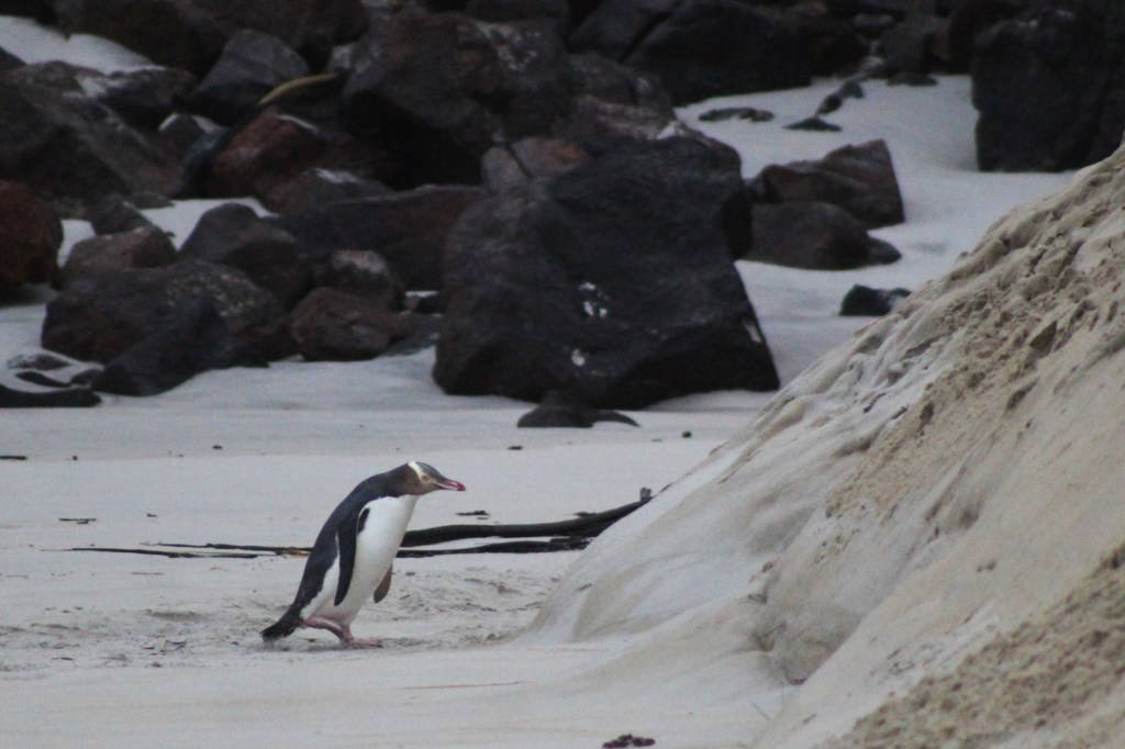 The yellow-eyed penguin, or the hoihoi, is unique to New Zealand. There are estimated to be 4-5,000 individuals left in the world, and their population has been rapidly declining. Over the past 20 years, the species has seen a significant decline, over 65%. They believe that this decline was from a variety of reasons, including lack of food, disease, and predators. There is currently a recovery strategy in effect to help bring the declining numbers of these penguins back up.