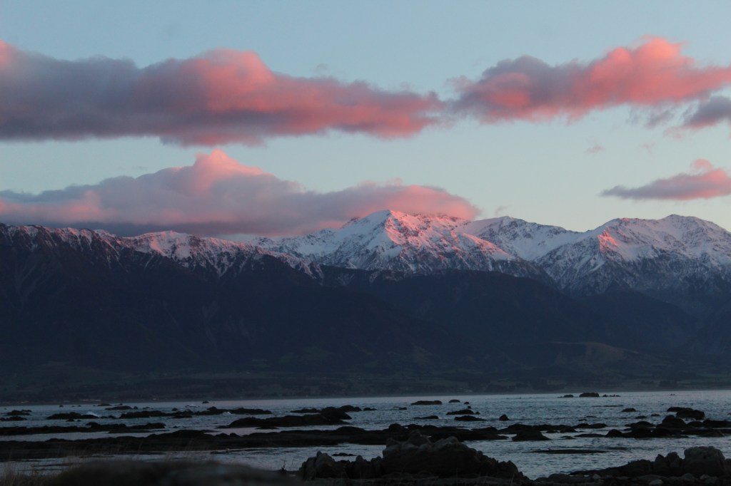 While we were freedom camping in Kaikoura, we got to witness some of the best sunrises that we have seen while in New Zealand. The sky in this area loves to just burst with color, and we were greeted with pink and red skies each morning, along with some stunning snow-capped peaks to the west. We also were blessed with some of the best weather we have had in months, so our spirits were higher than usual. This also led to the decision of giving Eric a much needed haircut (see our video for how that turned out!).