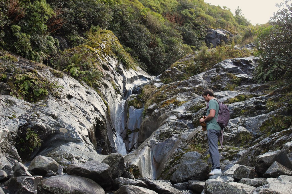After stopping at the swing bridge, we took the long way around the loop back to the visitor center to see Wilkies Pools. Along the way, we also saw the Waingongoro DOC Hut. We enjoyed checking out the hut, it was much nicer than either of us were expecting. The hut had plenty of bunks and a nice kitchen and lounge area with a woodstove at the center of the main room. After the hut, we pressed on, the track to Wilkies Pools was so overgrown, we were basically bushwhacking our way through. In many places we couldn’t even see the floor of the trail so we were just hoping our footing was solid. We eventually made it, but it was far tougher than it should have been. Wilkies pools are a series of natural pools seperated by waterfalls with crystal clear water. It was pretty cold while we were there, but I’m sure it is a popular swimming spot in the summer time. As we kept climbing to the top, we were rewarded with even more waterfalls and pools, which was really fun for us to discover. All in all, this ended up being a bigger hiking day than we had originally anticipated, and we spent around 5 hours hiking through this area.