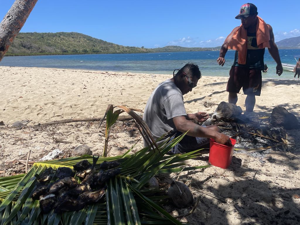 It sounded like the trip was a lot of fun. Eric got to go snorkeling and see a bunch of different fish in the reefs, and even got to try his hand at spearfishing! He didn’t manage to catch anything, but said it was still super cool to try. Luke, and his brothers came on the trip as well, and luckily, they were able to get a good amount of fish. This was what they had planned to eat for lunch, so it was very cool that they were able to catch it that very morning. Once they arrived at the island, Eric got yet another coconut, and enjoyed some ‘island time’ (basically, just napping and hanging out on the beach). Eric did say that he was a bit bored at the island, but Eric really isn’t a fan of hanging around doing nothing, so that doesn’t surprise me. For lunch, they had their fresh caught fish, which Luke’s family barbequed on an open fire right on the beach, some rice, and some salad that our host mom brought.