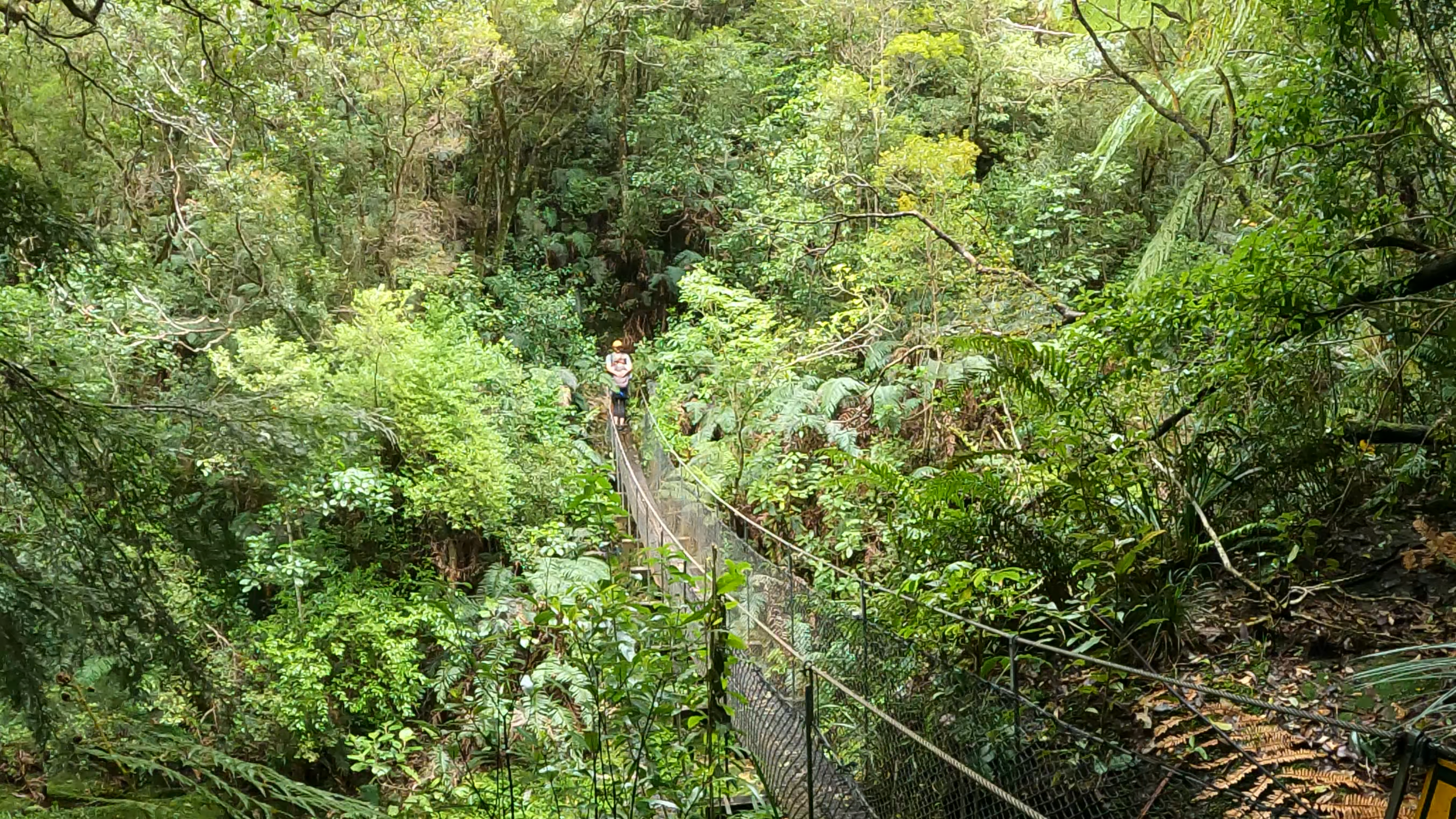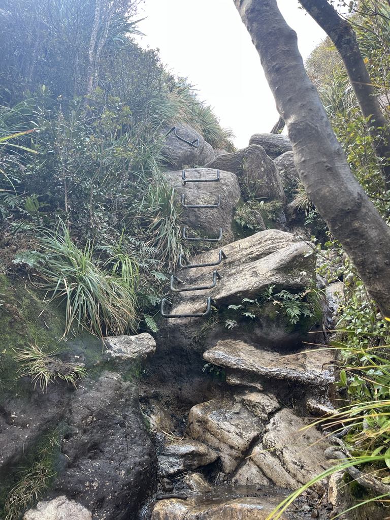 After our little detour we continued on the track. It took us through a lot of native bush, and it was a pretty steady climb up from the get go. There were a couple of river crossings, and they even had flood detours in place for when the water would get too high. We decided to check out one of these detours, and were rewarded with a pretty sketchy little swing bridge, with a maximum capacity of a single person at a time. We spent a couple of minutes walking back and forth along the bridge and checking out the river and small falls in the area before continuing on to the next section of the hike: The Rock Staircase.